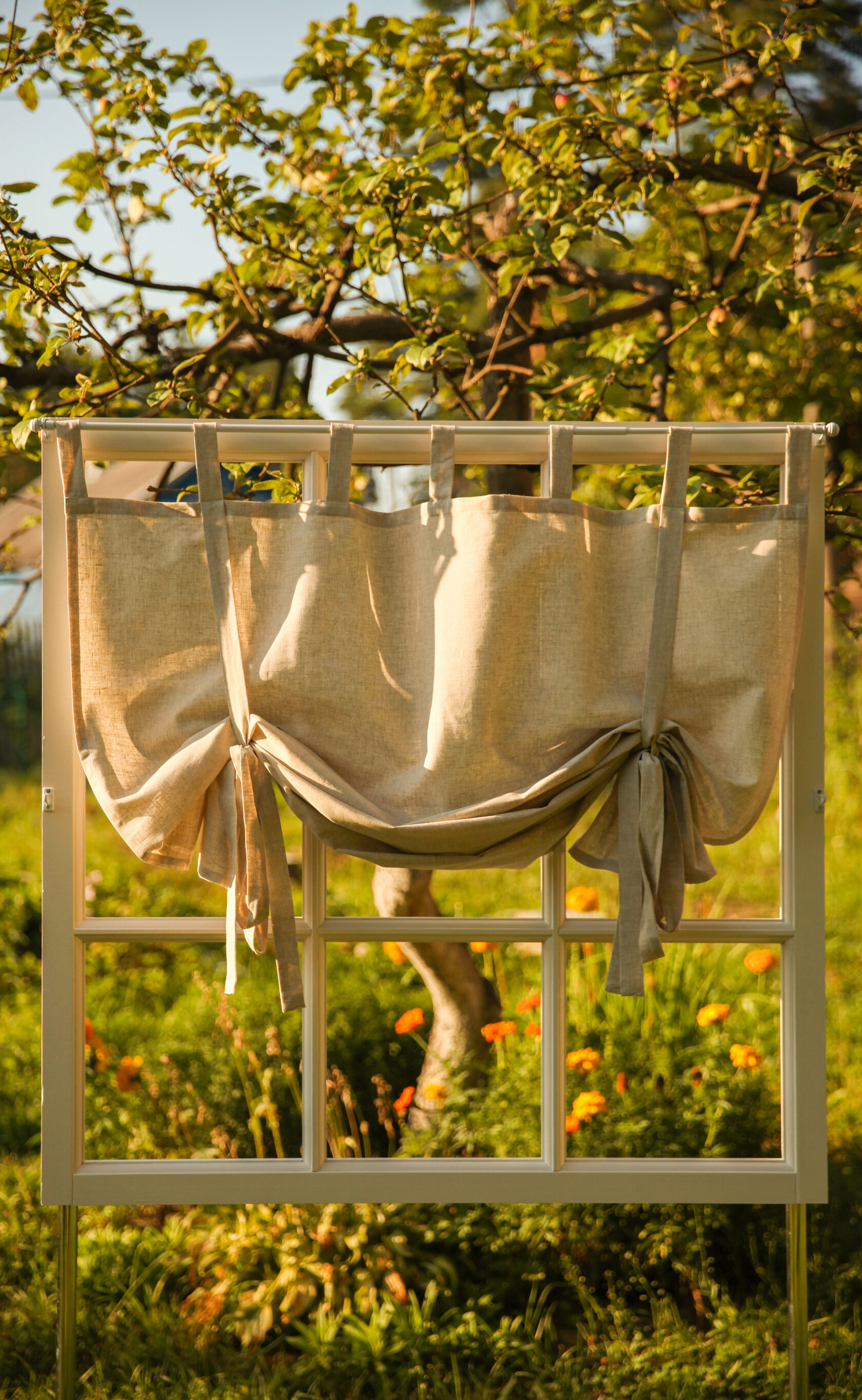 Штора на петлях из полульна ,натурального серого цвета.Ткань очень практичная,после стирки садится на 2-4%,не теряет внешний вид и отлично переносит постоянную эксплуатацию, просто стирается и быстро сохнет.Идеально подходит для кухни или столовой.Высоту шторы можно регулировать с помощью завязок.Индивидуальная подгонка-под заказ.Изменение размеров и верха изделия под ваш карниз(шторная лента 6 см,кулиса и шторная лента -имитация люверсов 10 см.)Можно заказать скатерть или салфетки по вашим размерам в цвет шторы. Размер: